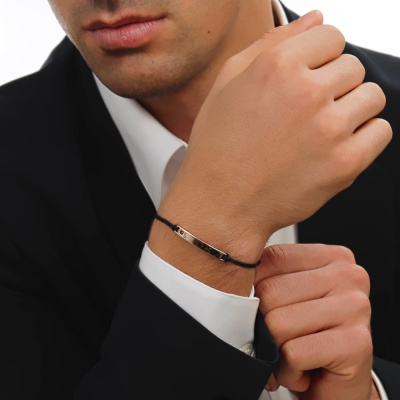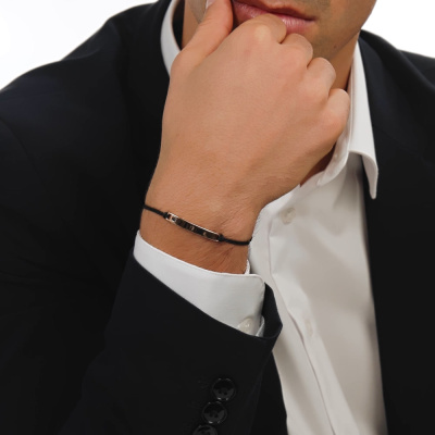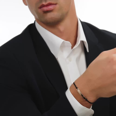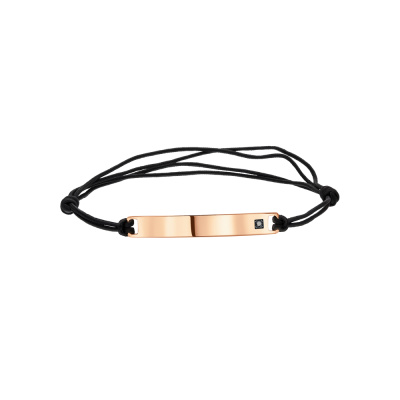 Браслет с 1 бриллиантом черным природным облагороженным, 0.01 карат, огранка круг 57 граней, цвет 7, чистота 6, тип огранки А; нить; Розовое золото 585 пробы.