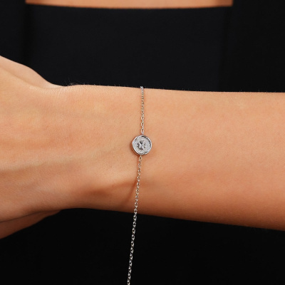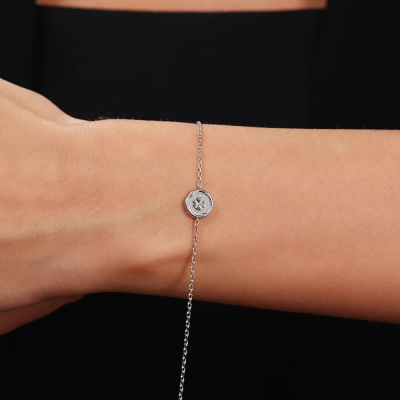 Браслет с 1 бриллиантом природным, 0.003 карат, огранка круг 17 граней, цвет 2, чистота 2, тип огранки А; Серебро 925 пробы.
