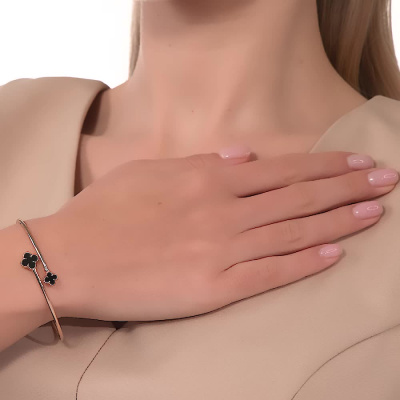 Браслет с 2 ониксами черными природными; Розовое золото 585 пробы.