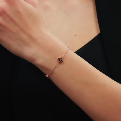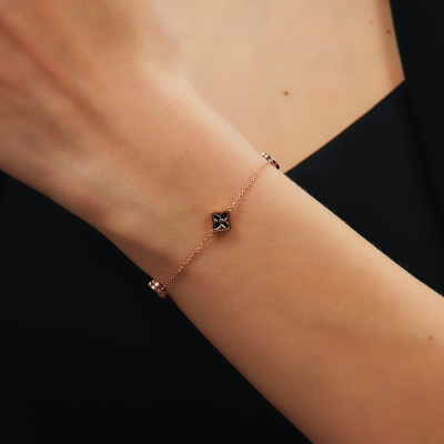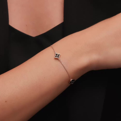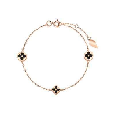 Браслет, вставка: оникс черный синтетический; Розовое золото 585 пробы.
