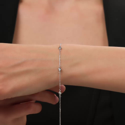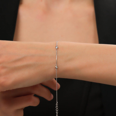 Серебряный браслет с бриллиантами выращенными