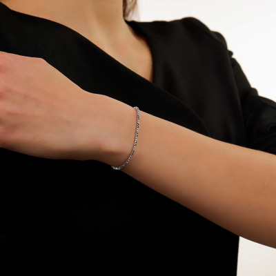 Браслет с 47 бриллиантами природными, 0.45 карат, огранка круг 57 граней, цвет 3, чистота 6, тип огранки А; Белое золото 585 пробы.