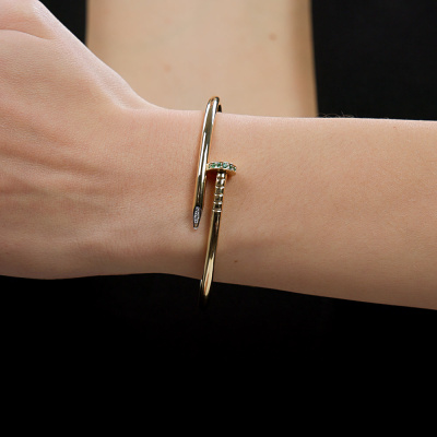 Золотой браслет с бриллиантами природными и изумрудами природными