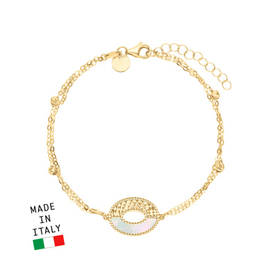 Браслет с 1 перламутром белым природным; 1 перламутром дублет; Желтое золото 585 пробы.