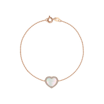 Браслет с 24 бриллиантами природными, 0.09 карат, огранка круг 17 граней, цвет 2, чистота 2, тип огранки А; 1 перламутром белым природным; Розовое золото 585 пробы.