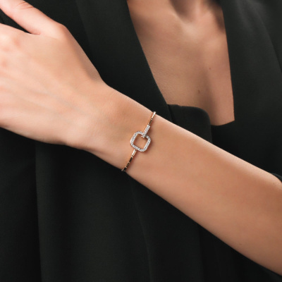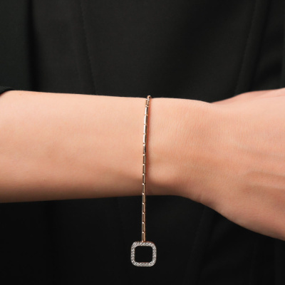 Браслет с 32 бриллиантами природными, 0.22 карат, огранка круг 57 граней, цвет 3, чистота 6, тип огранки А; Розовое золото 585 пробы.