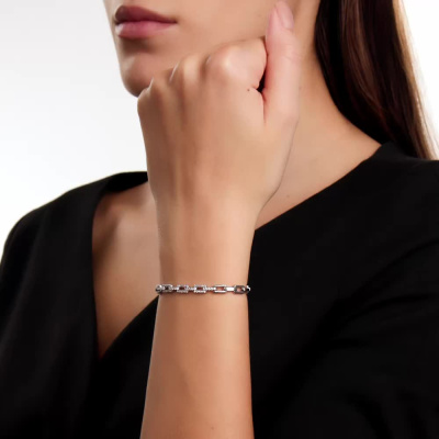 Браслет с 20 бриллиантами природными, 0.14 карат, огранка круг 57 граней, цвет 3, чистота 6, тип огранки А; 36 бриллиантами природными, 0.15 карат, огранка круг 57 граней, цвет 3, чистота 6, тип огранки А; Белое золото 585 пробы.