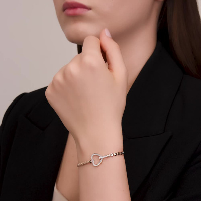 Браслет с 33 бриллиантами природными, 0.23 карат, огранка круг 57 граней, цвет 3, чистота 6, тип огранки А; Розовое золото 585 пробы.