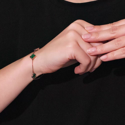 Браслет с 3 малахитами; Розовое золото 585 пробы.