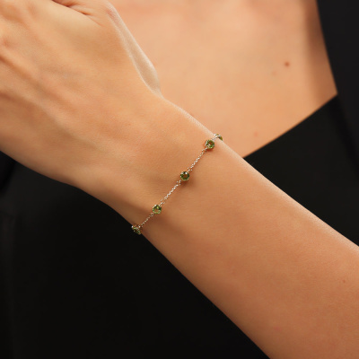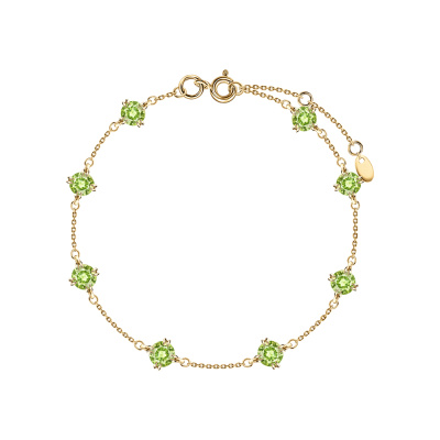 Браслет с 8 хризолитами природными, 2.269 карат, тип огранки В; Желтое золото 585 пробы.