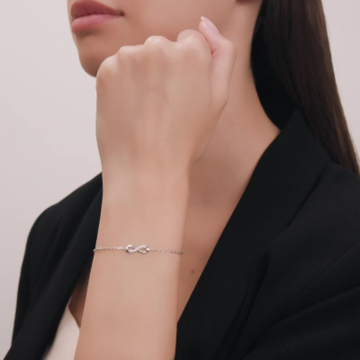 Браслет с 9 бриллиантами природными, 0.03 карат, огранка круг 17 граней, цвет 3, чистота 3, тип огранки Б; Серебро 925 пробы.