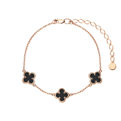 Браслет с 3 ониксами черными природными, 2.14 карат; Розовое золото 585 пробы.