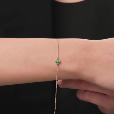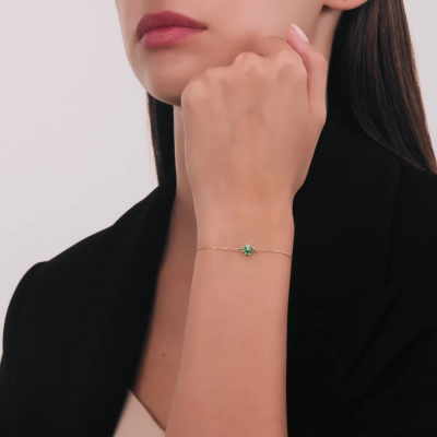 Браслет с 4 изумрудами природными, 0.2 карат, цвет 3, чистота 3, тип огранки В; Желтое золото 585 пробы.