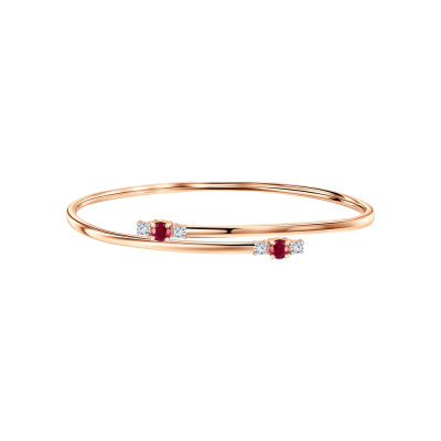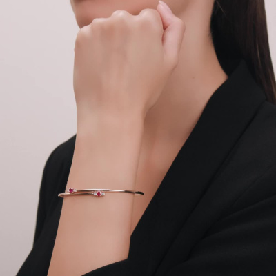 Браслет с 4 бриллиантами природными, 0.17 карат, огранка круг 57 граней, цвет 4, чистота 5, тип огранки А; 2 рубинами природными, 0.36 карат, цвет 2, чистота 2, тип огранки В; Розовое золото 585 пробы.