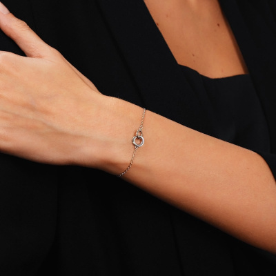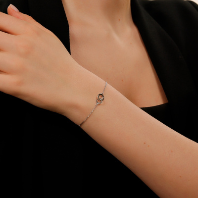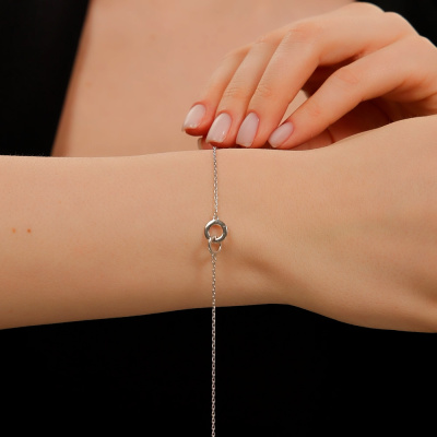 Браслет с 1 бриллиантом природным, 0.004 карат, огранка круг 17 граней, цвет 3, чистота 3, тип огранки Б; Серебро 925 пробы.