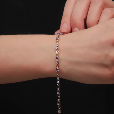 Браслет с 24 бриллиантами природными, 0.33 карат, огранка круг 17 граней, цвет 2, чистота 2, тип огранки А; 12 танзанитами природными, 2.83 карат; Розовое золото 585 пробы.