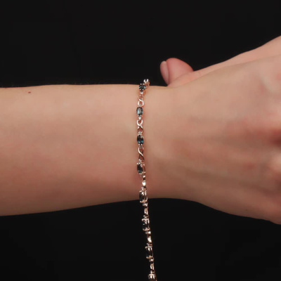 Браслет с 24 бриллиантами природными, 0.33 карат, огранка круг 17 граней, цвет 2, чистота 2, тип огранки А; 12 топазами лондон природными, 3.41 карат; Розовое золото 585 пробы.