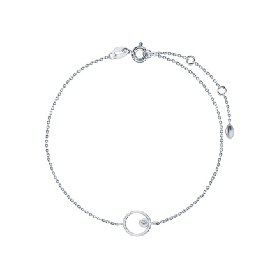 Браслет с 1 бриллиантом природным, 0.008 карат, огранка круг 57 граней, цвет 3, чистота 6, тип огранки А; Белое золото 585 пробы.