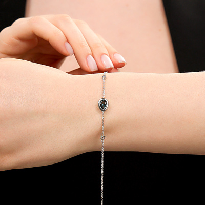 Браслет с 2 бриллиантами природными, 0.01 карат, огранка круг 17 граней, цвет 2, чистота 2, тип огранки А; 1 топазом лондон природным, 0.78 карат; Белое золото 585 пробы.