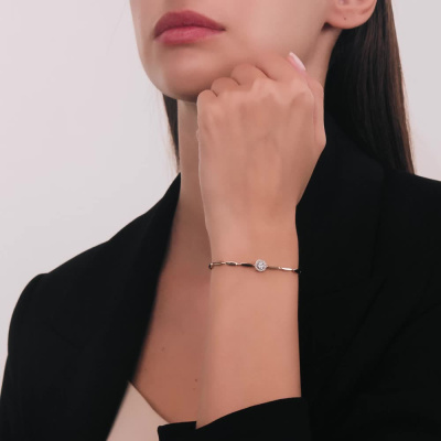 Браслет с 1 бриллиантом природным, 0.03 карат, огранка круг 57 граней, цвет 3, чистота 6, тип огранки А; 6 бриллиантами природными, 0.04 карат, огранка круг 57 граней, цвет 3, чистота 6, тип огранки А; 19 бриллиантами природными, 0.03 карат, огранка круг 17 граней, цвет 2, чистота 3, тип огранки А; Розовое золото 585 пробы.