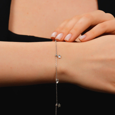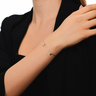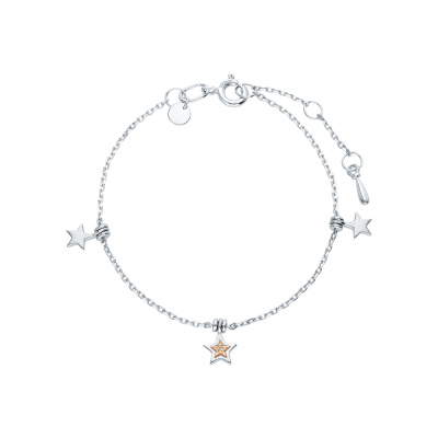 Браслет с 1 бриллиантом природным, 0.003 карат, огранка круг 17 граней, цвет 3, чистота 3, тип огранки Б; Серебро 925 пробы.