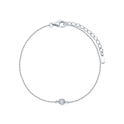 Браслет с 1 бриллиантом выращенным, 0.16 карат, огранка круг 57 граней, цвет 3, чистота 5; Серебро 925 пробы.