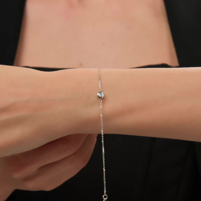 Серебряный браслет с бриллиантами выращенными