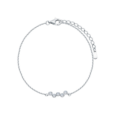 Браслет с 5 бриллиантами выращенными, 0.17 карат, огранка круг 57 граней, цвет 3, чистота 5; Серебро 925 пробы.