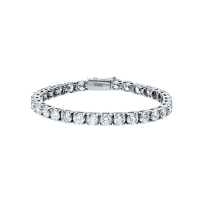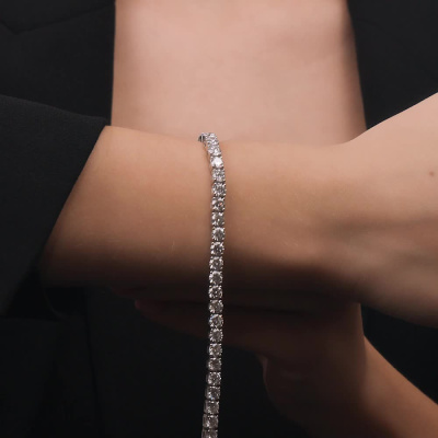 Браслет с 33 бриллиантами выращенными, 14.1 карат, огранка круг 57 граней, цвет 2, чистота 5, тип огранки А; Белое золото 585 пробы.