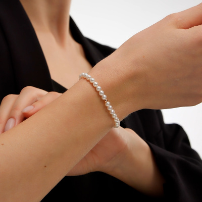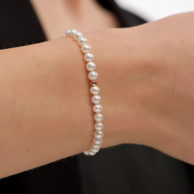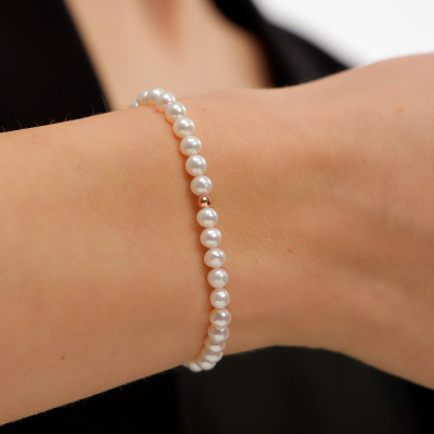Браслет, вставка: жемчуг пресноводный культивированный белый; Розовое золото 585 пробы.