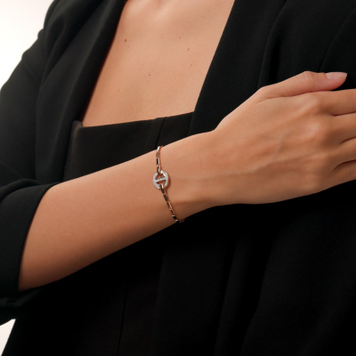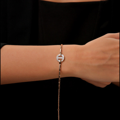 Браслет с 25 бриллиантами природными, 0.12 карат, огранка круг 17 граней, цвет 2, чистота 2, тип огранки А; Розовое золото 585 пробы.