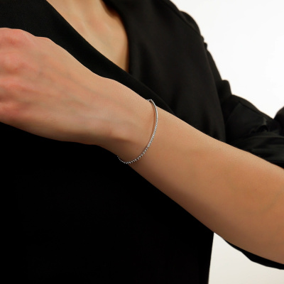 Браслет с 32 бриллиантами природными, 0.31 карат, огранка круг 57 граней, цвет 3, чистота 7, тип огранки А; Белое золото 585 пробы.