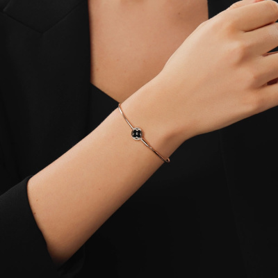 Браслет с 1 ониксом черным природным; Розовое золото 585 пробы. УКРАШЕНИЕ ОБЛЕГЧЕННОЕ. ТРЕБУЕТ БЕРЕЖНОГО ОБРАЩЕНИЯ. Украшение произведено по итальянской технологии изготовления облегченных (пустотелых) ювелирных изделий. Оно требует аккуратного и бережного обращения. Снимайте украшение, когда выполняете работу по дому, занимаетесь спортом, принимаете душ или ванну, посещаете сауну, бассейн, а также перед сном. Избегайте жестких касаний ювелирного изделия с твёрдыми поверхностями и предметами.