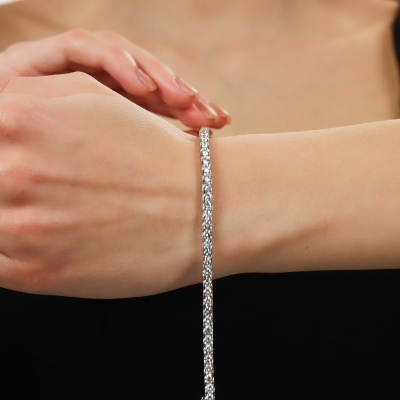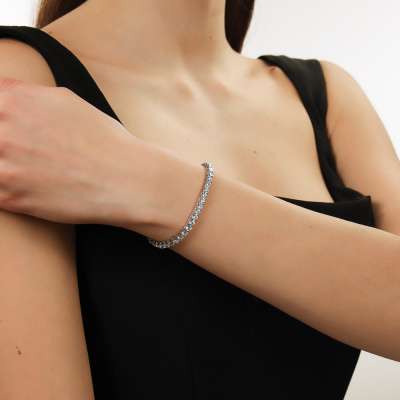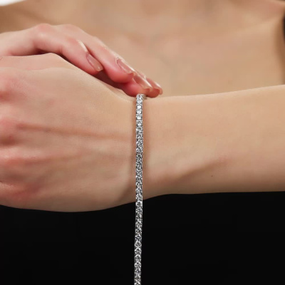Браслет с 49 бриллиантами выращенными, 8.12 карат, огранка круг 57 граней, цвет 3, чистота 5, тип огранки А; Белое золото 585 пробы.