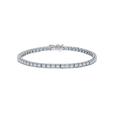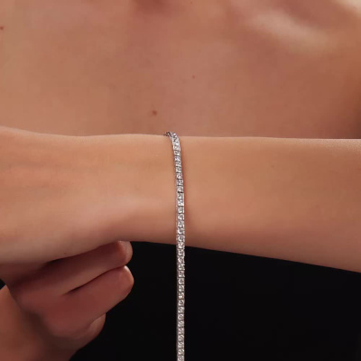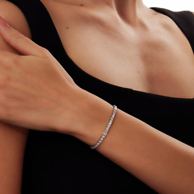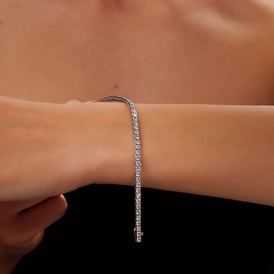 Браслет с 56 бриллиантами выращенными, 3.36 карат, огранка круг 57 граней, цвет 3, чистота 5, тип огранки А; Белое золото 585 пробы.