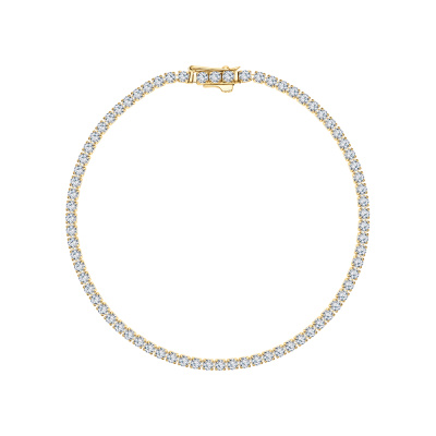 Браслет с 69 бриллиантами выращенными, 2.56 карат, огранка круг 57 граней, цвет 3, чистота 5, тип огранки А; Желтое золото 585 пробы.