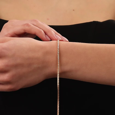 Браслет с 66 бриллиантами выращенными, 2.45 карат, огранка круг 57 граней, цвет 3, чистота 5, тип огранки А; Розовое золото 585 пробы.