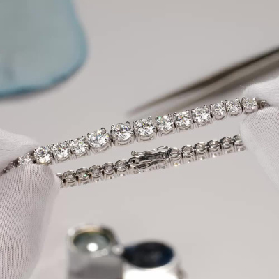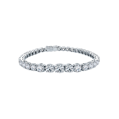 Браслет с 3 бриллиантами выращенными, 2.49 карат, огранка круг 57 граней, цвет 4, чистота 5, тип огранки А; 6 бриллиантами выращенными, 3.03 карат, огранка круг 57 граней, цвет 4, чистота 5, тип огранки А; 8 бриллиантами выращенными, 2.12 карат, огранка круг 57 граней, цвет 3, чистота 5, тип огранки А; 18 бриллиантами выращенными, 3.87 карат, огранка круг 57 граней, цвет 3, чистота 5, тип огранки А; Белое золото 585 пробы.