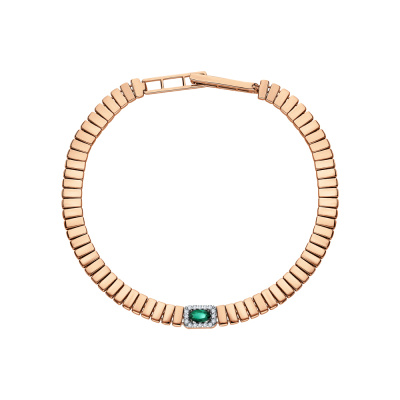 Браслет с 16 бриллиантами природными, 0.06 карат, огранка круг 17 граней, цвет 2, чистота 3, тип огранки А; 1 изумрудом природным, 0.2 карат, цвет 3, чистота 3, тип огранки Б; Розовое золото 585 пробы.
