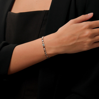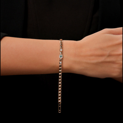 Браслет с 20 бриллиантами природными, 0.07 карат, огранка круг 17 граней, цвет 2, чистота 3, тип огранки А; 1 изумрудом природным, 0.08 карат, цвет 3, чистота 3, тип огранки Б; Розовое золото 585 пробы.