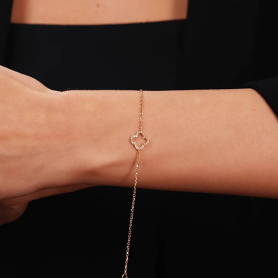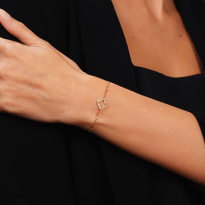 Браслет с 24 бриллиантами природными, 0.08 карат, огранка круг 17 граней, цвет 2, чистота 2, тип огранки А; Розовое золото 585 пробы.