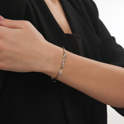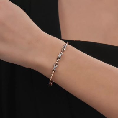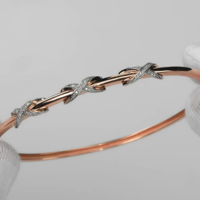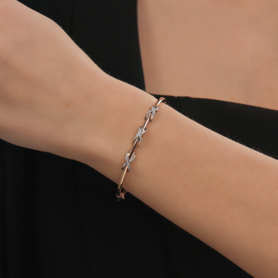 Браслет с 45 бриллиантами природными, 0.1 карат, огранка круг 17 граней, цвет 2, чистота 3, тип огранки А; Розовое золото 585 пробы.
