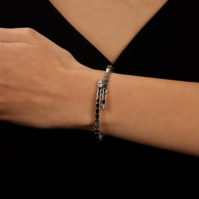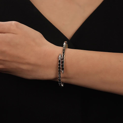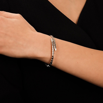 Браслет с 2 бриллиантами природными, 0.04 карат, огранка круг 57 граней, цвет 4, чистота 6, тип огранки А; 2 бриллиантами природными, 0.02 карат, огранка круг 57 граней, цвет 4, чистота 6, тип огранки А; 2 бриллиантами природными, 0.01 карат, огранка круг 17 граней, цвет 2, чистота 3, тип огранки А; Белое золото 585 пробы.