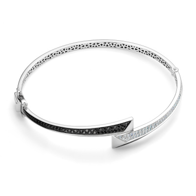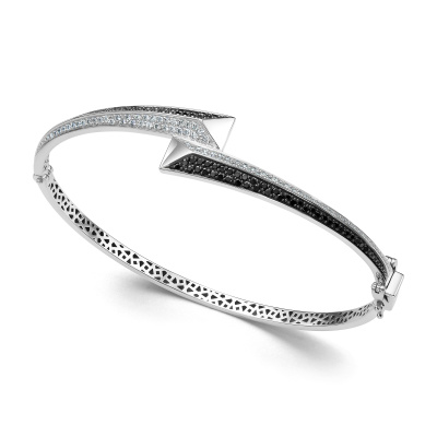 Браслет с 74 бриллиантами природными, 0.408 карат, огранка круг 57 граней, цвет 4, чистота 5, тип огранки А; 78 бриллиантами черными природными облагороженными, 0.501 карат, огранка круг 57 граней, цвет 7, чистота 6, тип огранки А; Белое золото 585 пробы.