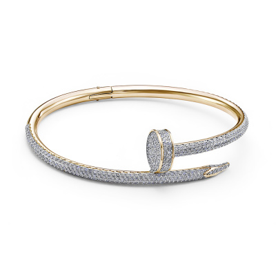 Браслет с 49 бриллиантами природными, 0.36 карат, огранка круг 57 граней, цвет 3, чистота 6, тип огранки А; 366 бриллиантами природными, 1.41 карат, огранка круг 17 граней, цвет 2, чистота 3, тип огранки А; Желтое золото 585 пробы.