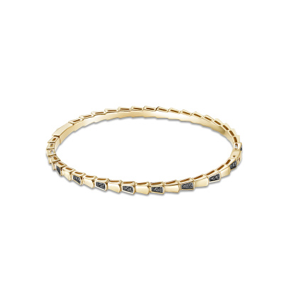 Браслет с 19 бриллиантами черными природными облагороженными, 0.27 карат, огранка круг 57 граней, цвет 7, чистота 6, тип огранки А; 19 бриллиантами черными природными облагороженными, 0.15 карат, огранка круг 57 граней, цвет 7, чистота 6, тип огранки А; Желтое золото 585 пробы.