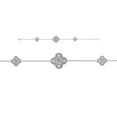 Браслет с 4 бриллиантами природными, 0.43 карат, огранка круг 57 граней, цвет 3, чистота 6, тип огранки А; 16 бриллиантами природными, 0.49 карат, огранка круг 57 граней, цвет 3, чистота 6, тип огранки А; 16 бриллиантами природными, 0.11 карат, огранка круг 57 граней, цвет 3, чистота 6, тип огранки А; 1 бриллиантом природным, 0.004 карат, огранка круг 17 граней, цвет 2, чистота 3, тип огранки А; Белое золото 585 пробы.