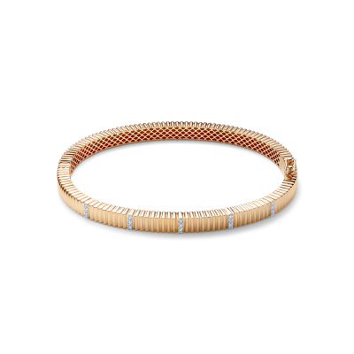 Браслет с 15 бриллиантами природными, 0.1 карат, огранка круг 57 граней, цвет 3, чистота 6, тип огранки А; Розовое золото 585 пробы.