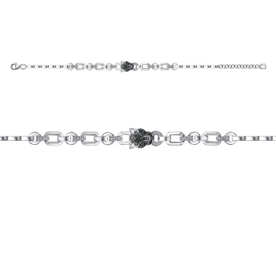 Браслет с 26 бриллиантами природными, 0.04 карат, огранка круг 17 граней, цвет 2, чистота 3, тип огранки А; 2 бриллиантами черными природными облагороженными, 0.01 карат, огранка круг 57 граней, цвет 7, чистота 6, тип огранки А; 23 бриллиантами черными природными облагороженными, 0.1 карат, огранка круг 57 граней, цвет 7, чистота 6, тип огранки А; 2 изумрудами природными, 0.005 карат, цвет 3, чистота 3, тип огранки Б; Белое золото 585 пробы.