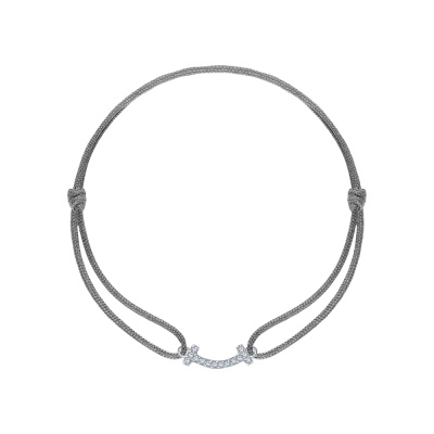 Браслет с 15 бриллиантами природными, 0.03 карат, огранка круг 17 граней, цвет 3, чистота 3, тип огранки Б; шнур; Серебро 925 пробы.